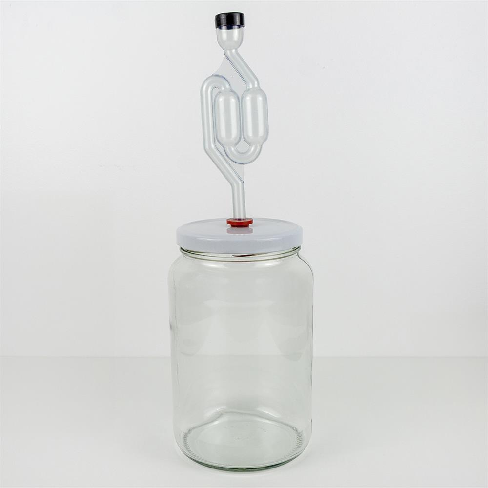 Fermenteringsburk komplet med vitt skruvlock, hål till tyl, tyl och jästingsrör. 1,7 liter