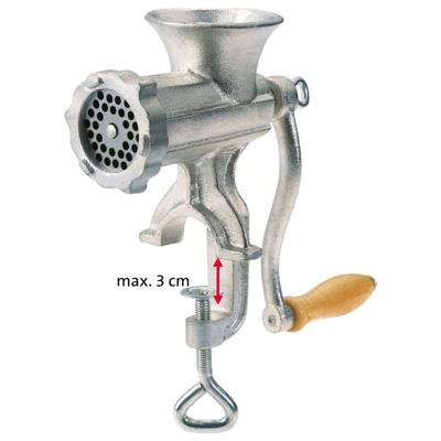 Köttkvarnen fästs enkelt på bänk- eller bordskanten med den inbyggda skruvfunktionen och står stadigt under användning. Handtaget i trä ger ett skönt och säkert grepp.