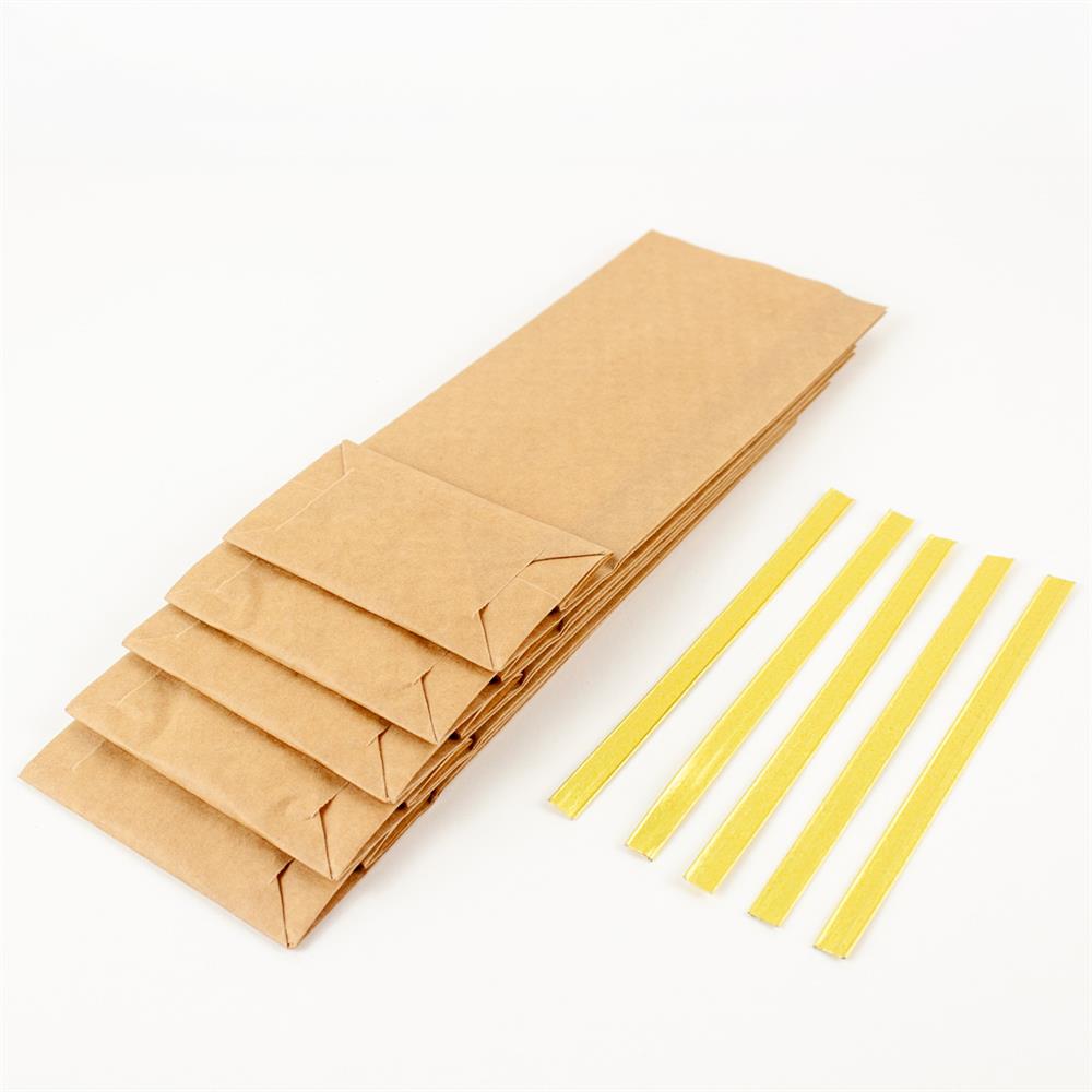 Set med 5 praktiska små papperspåsar med förslutningsclips.