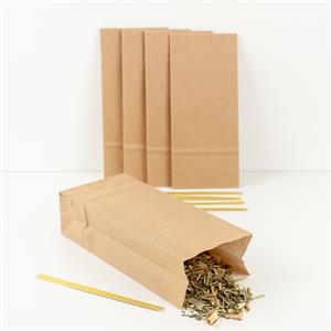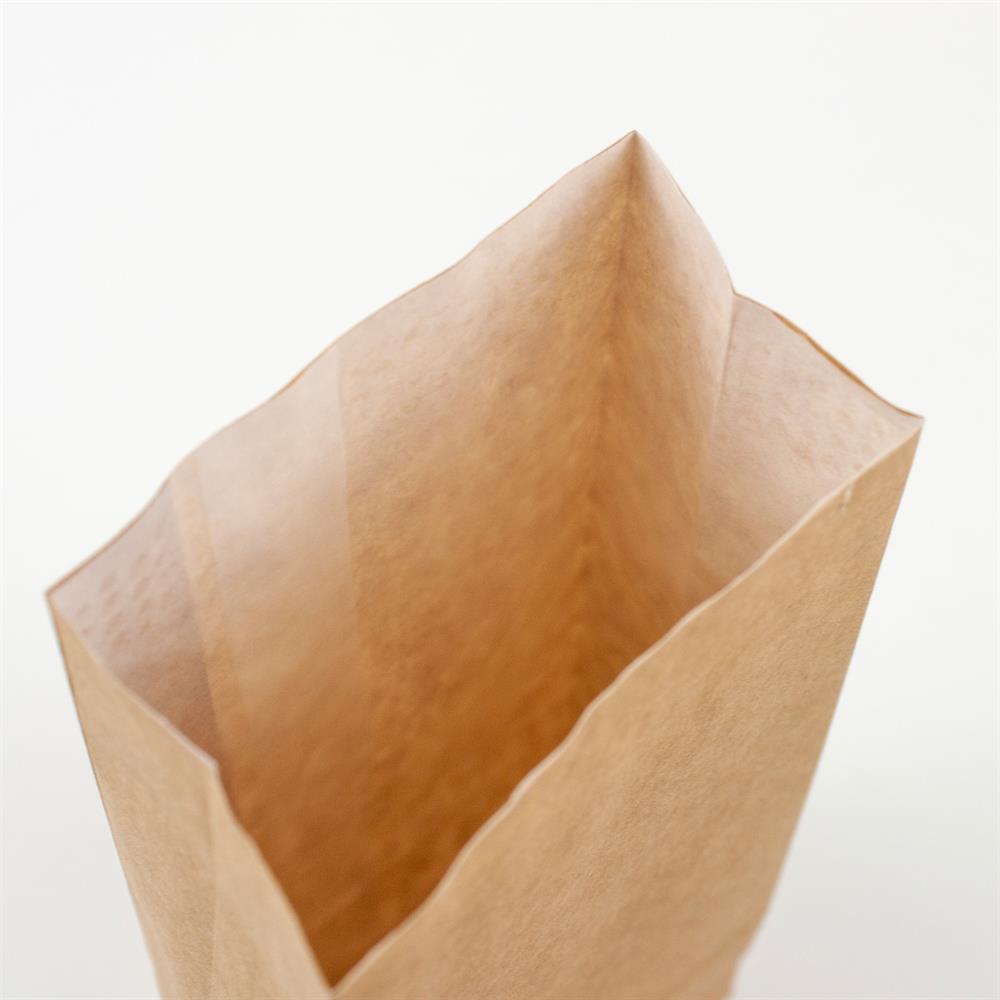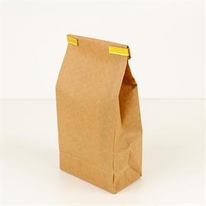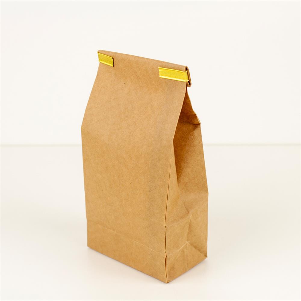 Påsen är tillverkad av kraftigt brunt kraftpapper med en insida av livsmedelsgodkänt papper, som skyddar innehållet och bidrar till att bevara arom och fräschör. Levereras med en guldfärgad påsförslutare, så att innehållet enkelt och säkert kan förslutas igen.